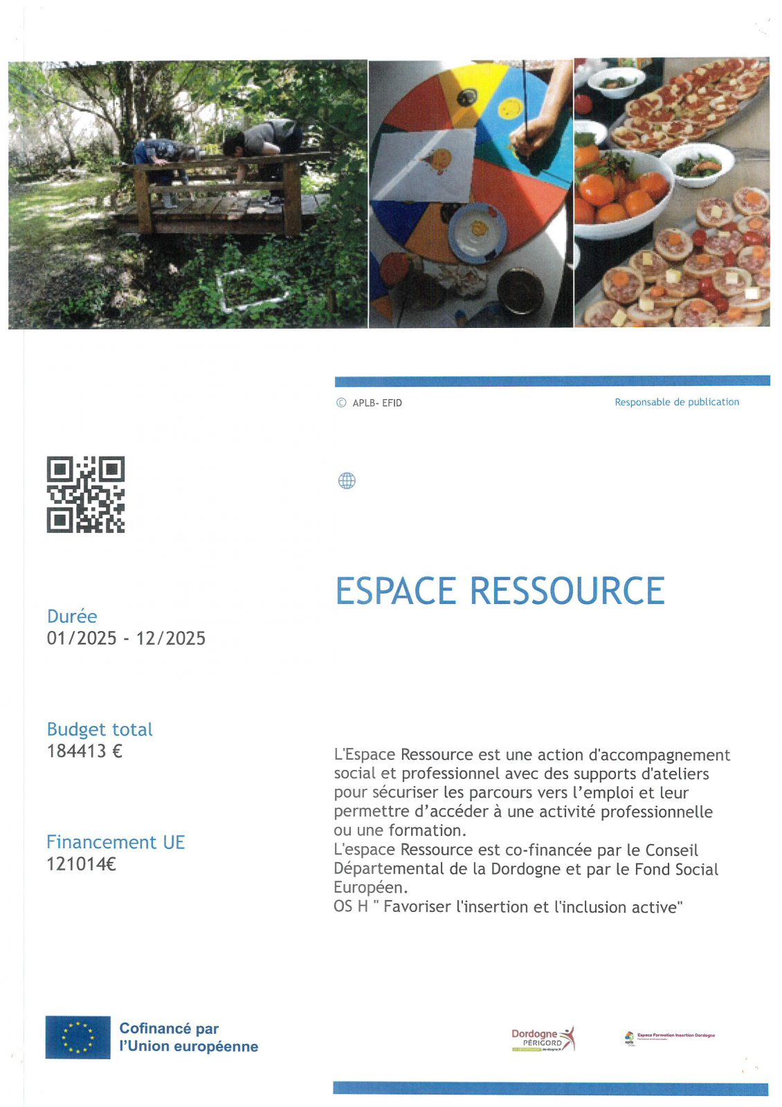 La section formation de l'APLB est composée de deux organismes distincts de par leur implantation mais également dans les parcours de formation qui y sont dispensés. Espace Formation Insertion Dordogne (EFID) situé en Dordogne avec : Un atelier de remobilisation « Espace Ressource » à Ribérac qui accompagne et mobilise les allocataires du RSA les plus éloignés de l'emploi avec des ateliers supports : cuisine, créatifs, jardin et ateliers à thèmes. Les personnes (...)
